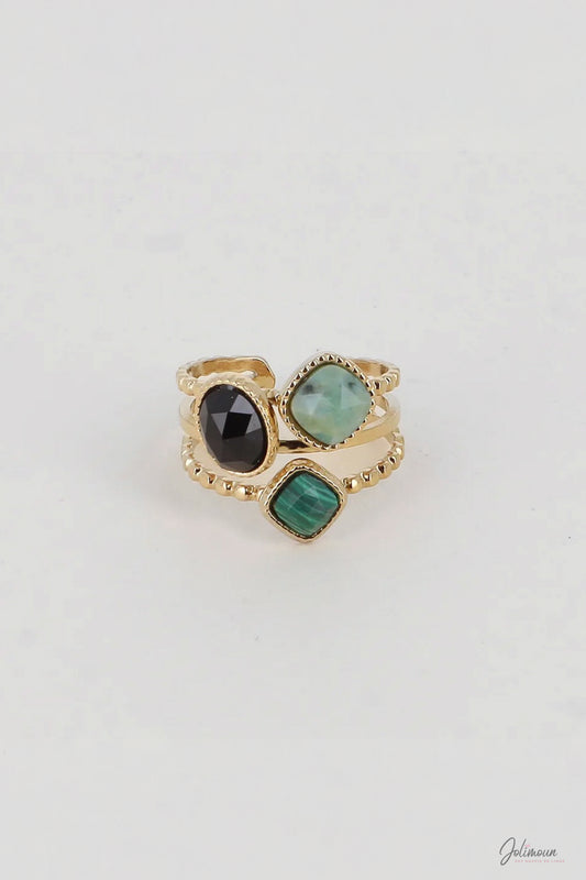 Un mix de verts ultra lumineux pour une bague qui attire l’œil tout en restant...