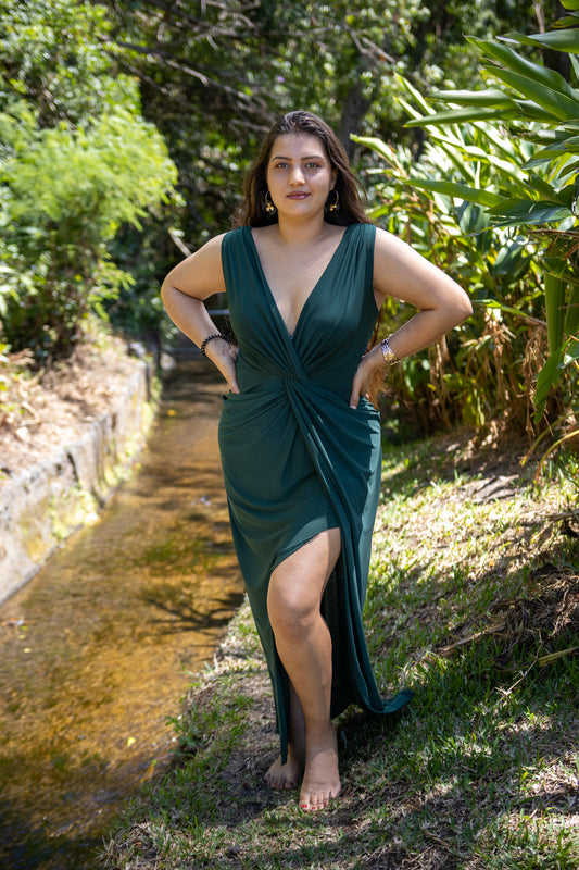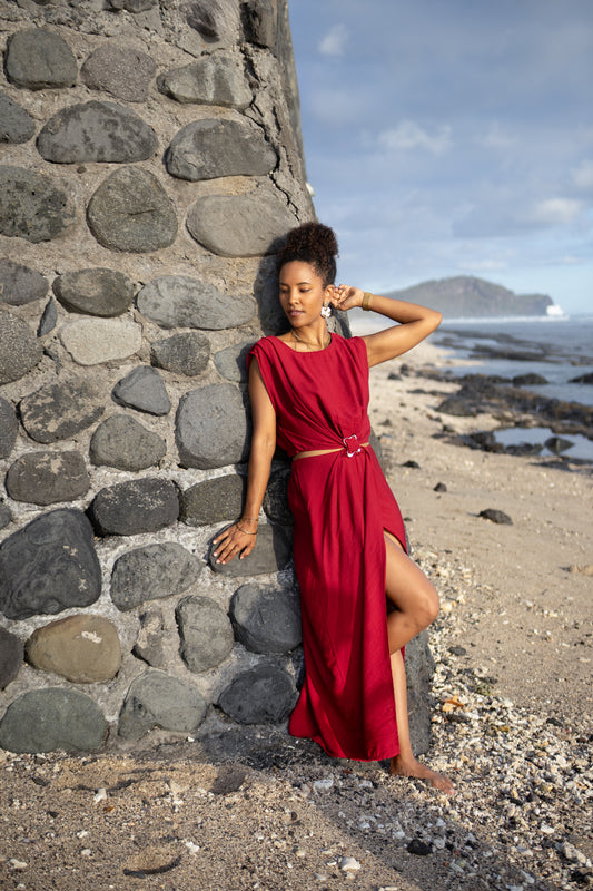 Éblouissante et irrésistiblement chic, la robe Ambre sublime la silhouette avec son drapé structuré et...