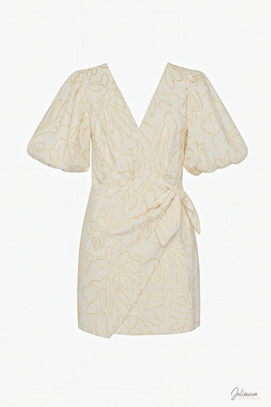 Une pièce éclatante et raffinée qui attire tous les regards. Détails Robe courte portefeuille écrue...