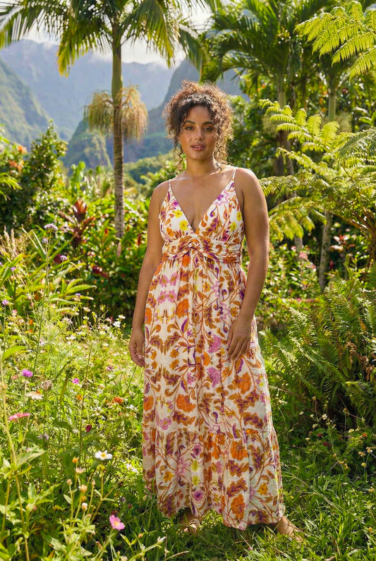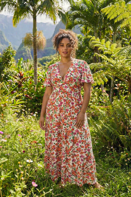 Laissez-vous séduire par le charme champêtre de la robe Amélia : une robe longue légère,...
