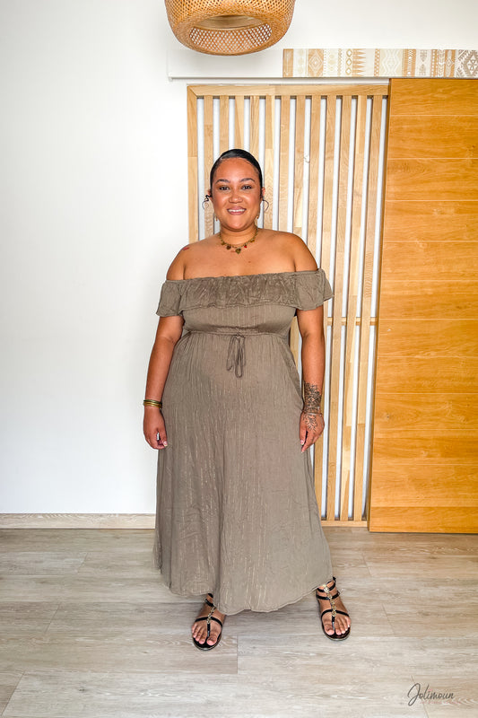 Un charme naturel et une coupe fluide pour cette robe col bardot au style romantique....