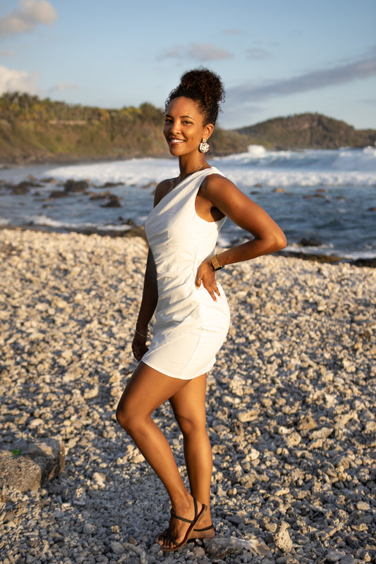 Minimaliste et irrésistiblement chic, la robe Angeline séduit par sa coupe asymétrique et sa structure...