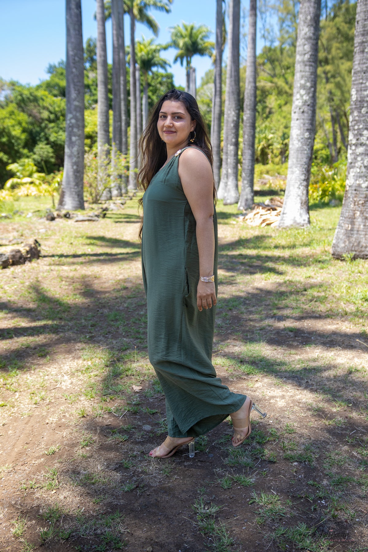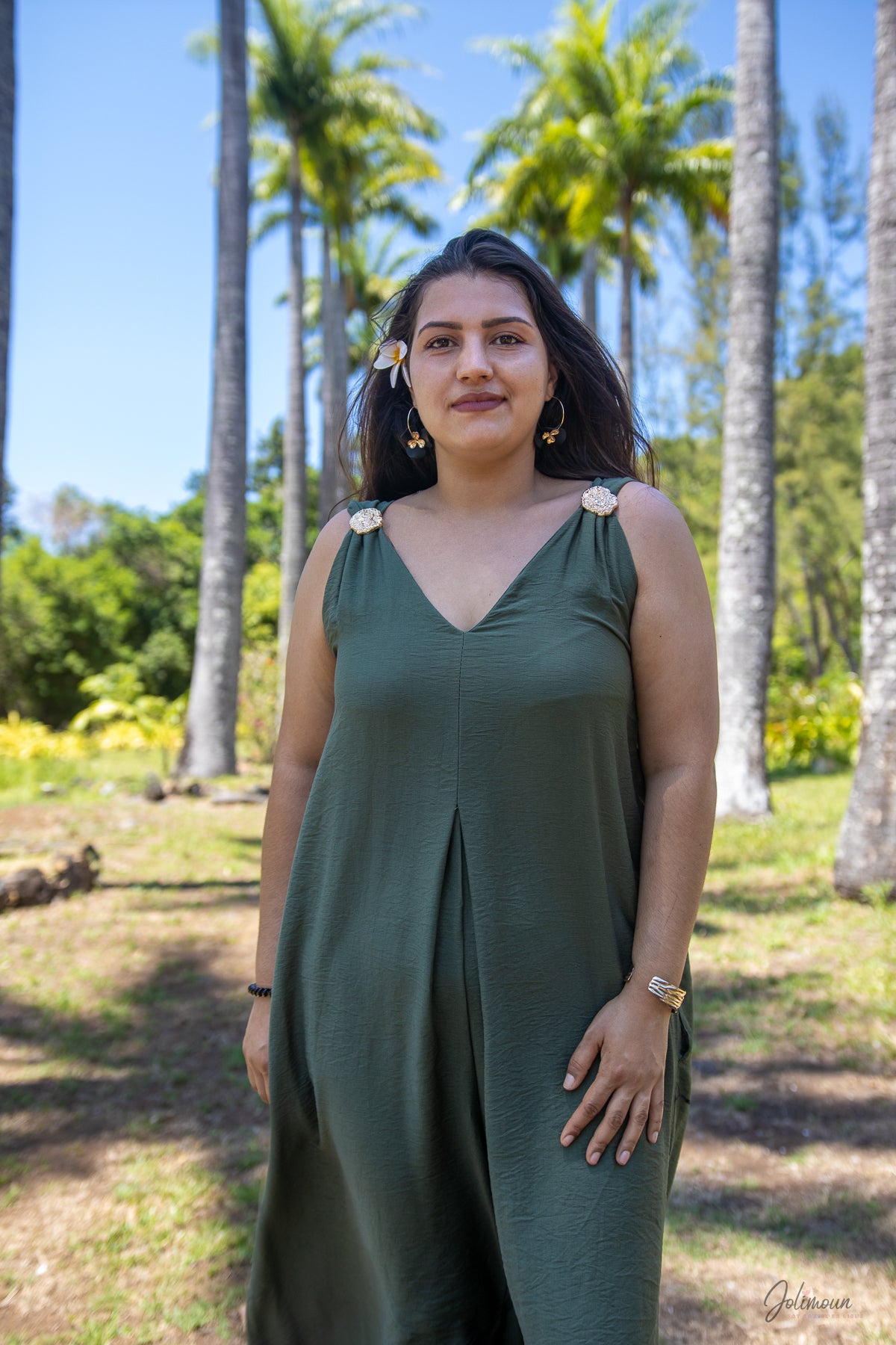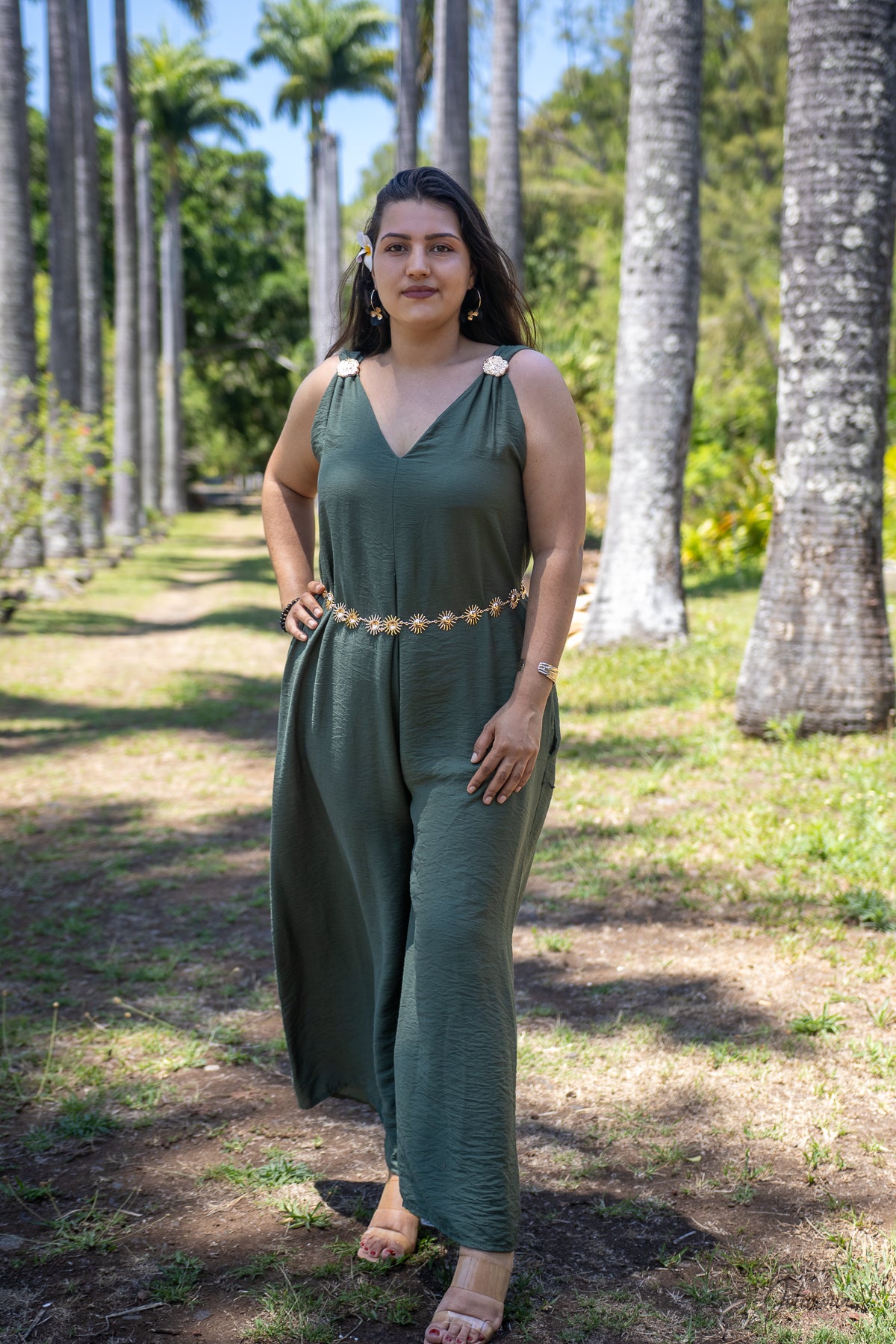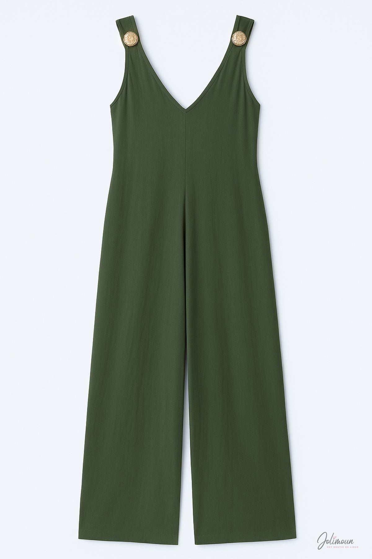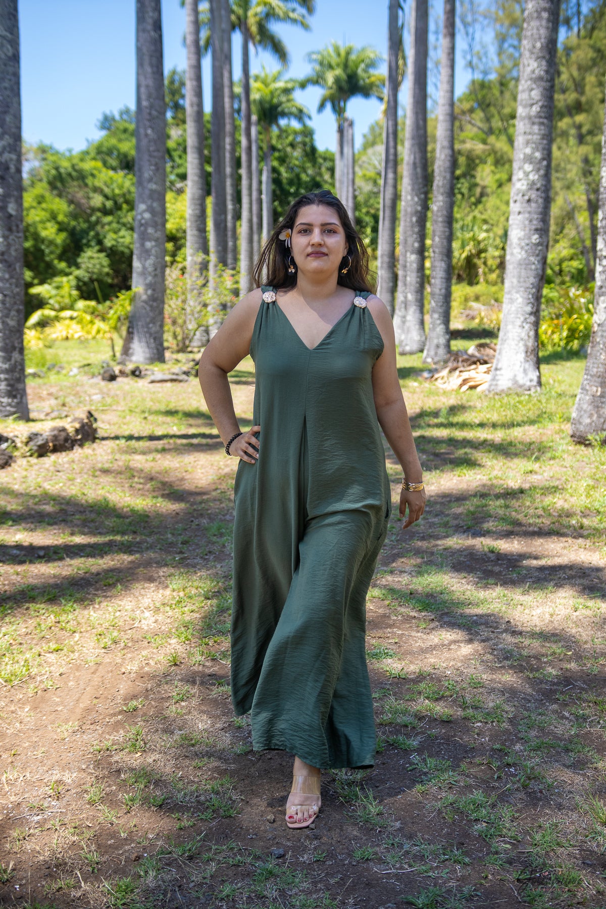 Abbie – Combinaison pantalon fluide Kaki détail bijou