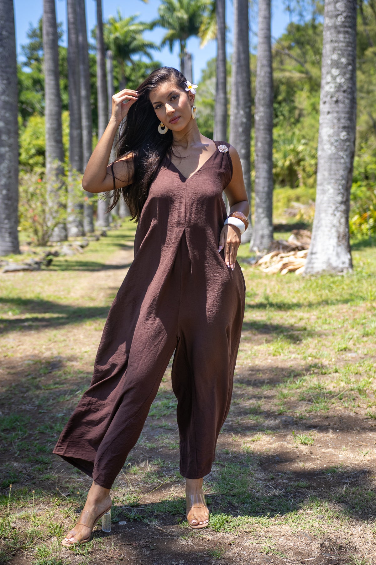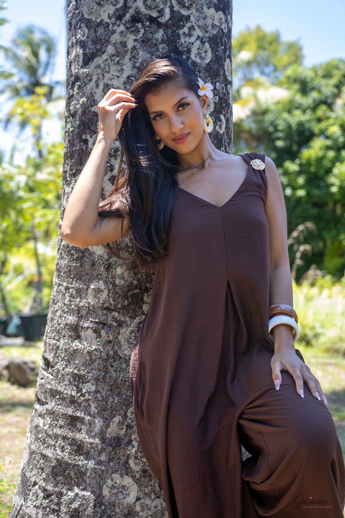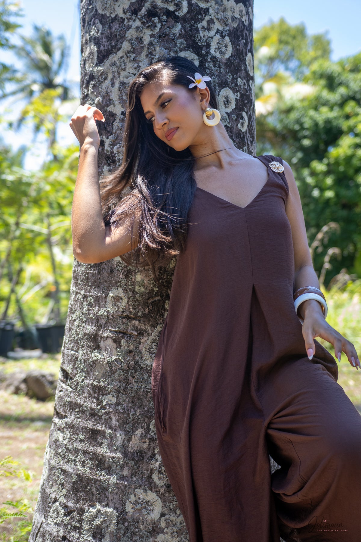 Abbie – Combinaison pantalon fluide marron détail bijou