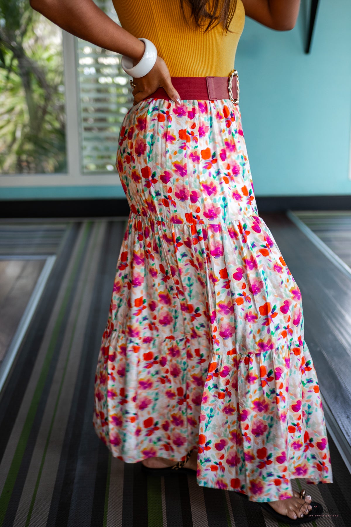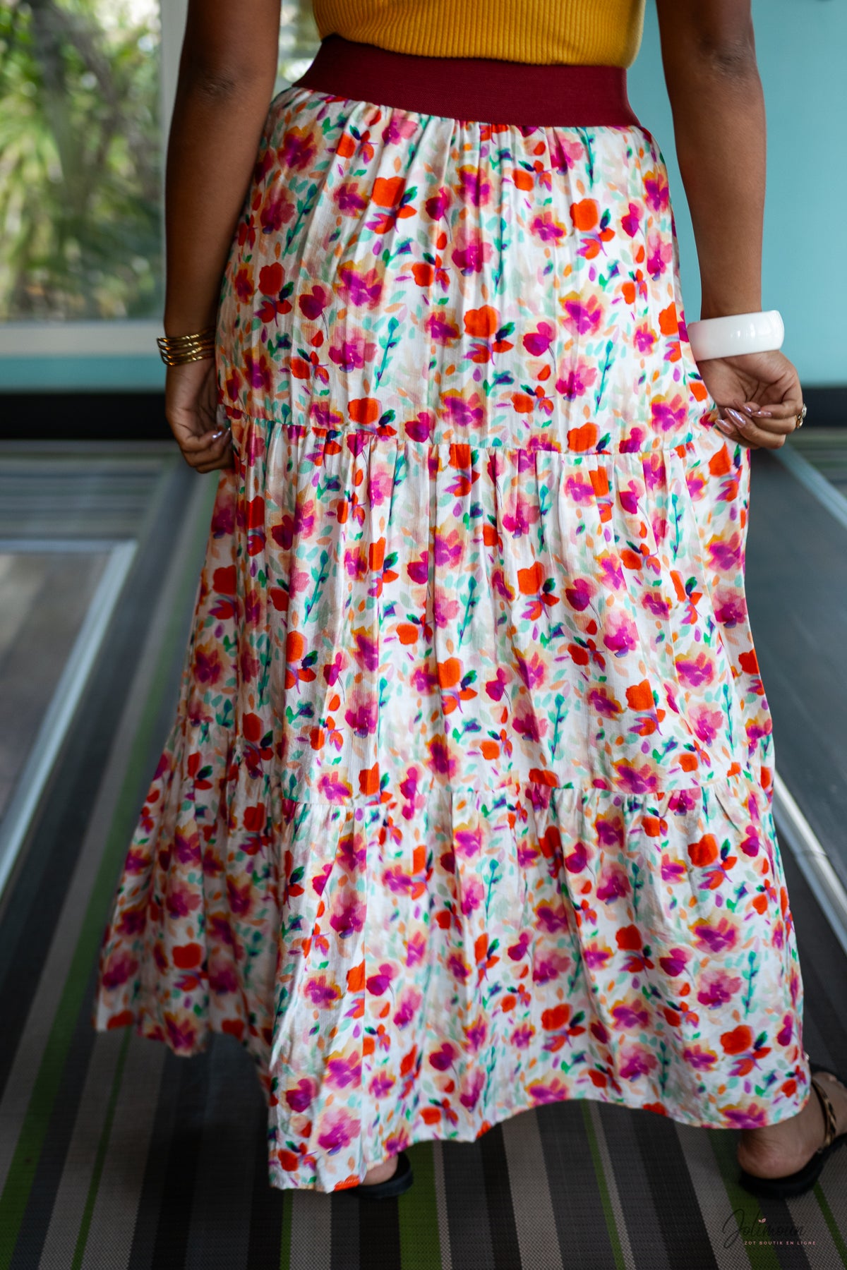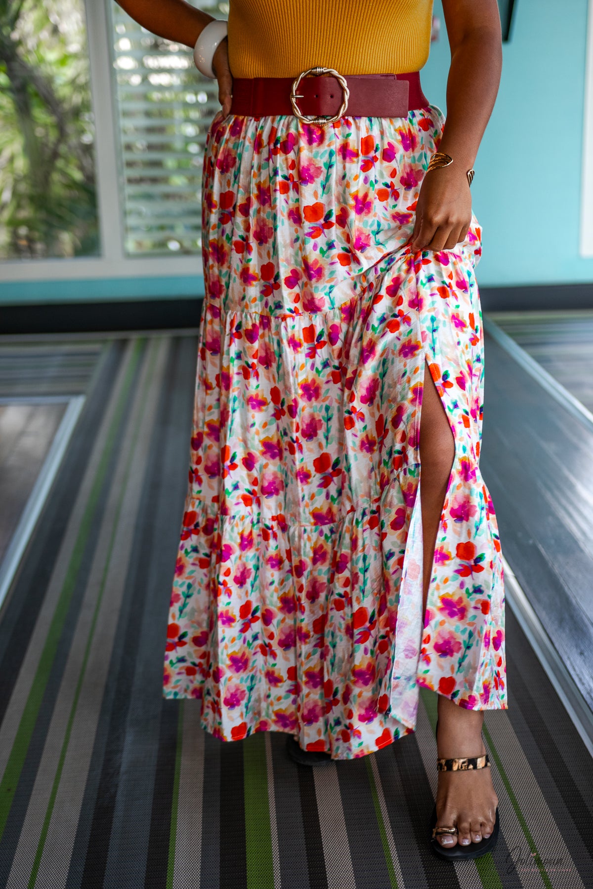 April – Jupe longue fleurie à taille élastique et fente latérale
