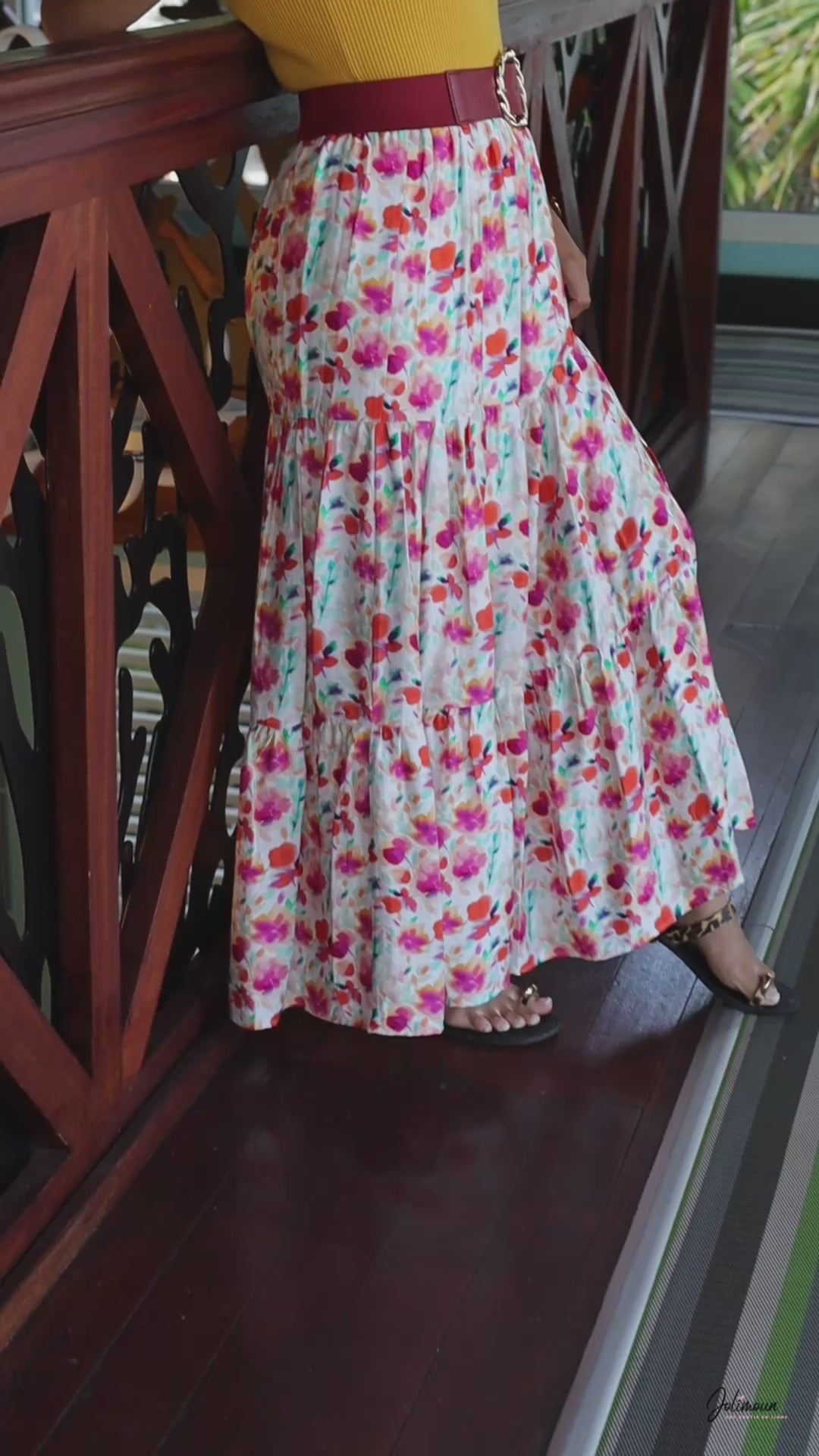 Un vent de fraîcheur souffle sur votre dressing avec April, la jupe longue à l’imprimé floral éclatant. Légère, fluide et colorée, elle apporte de la fraicheur à chaque pas.