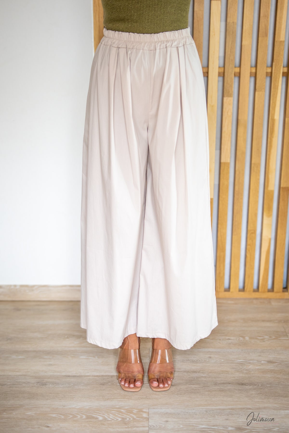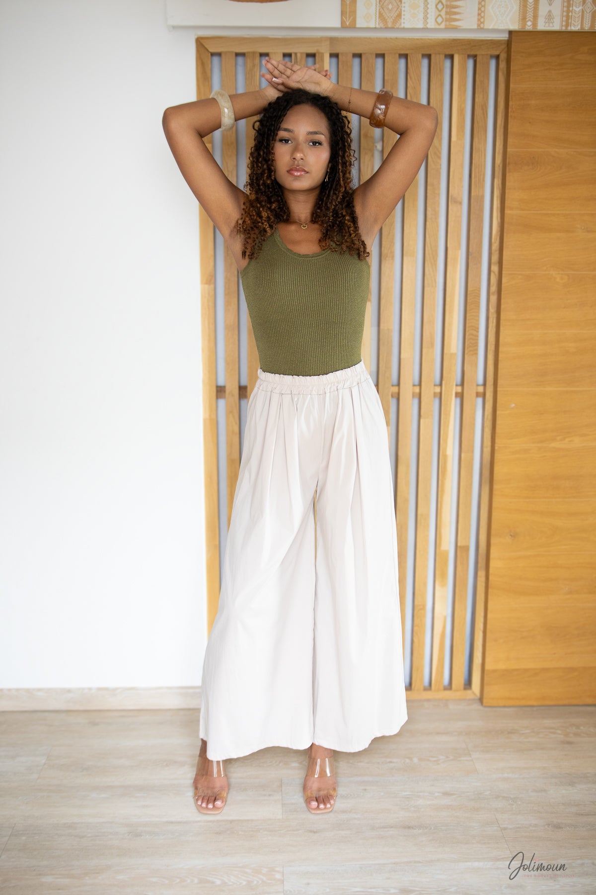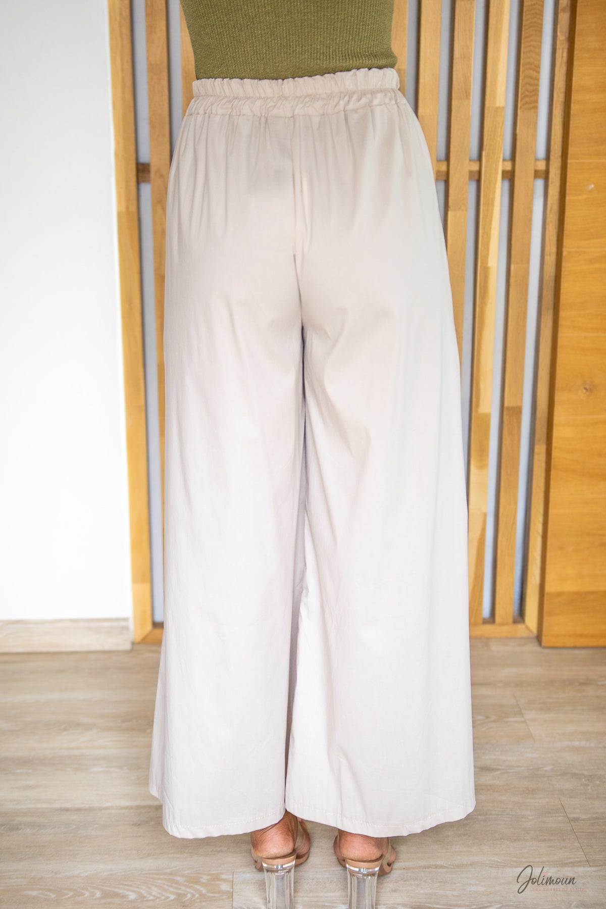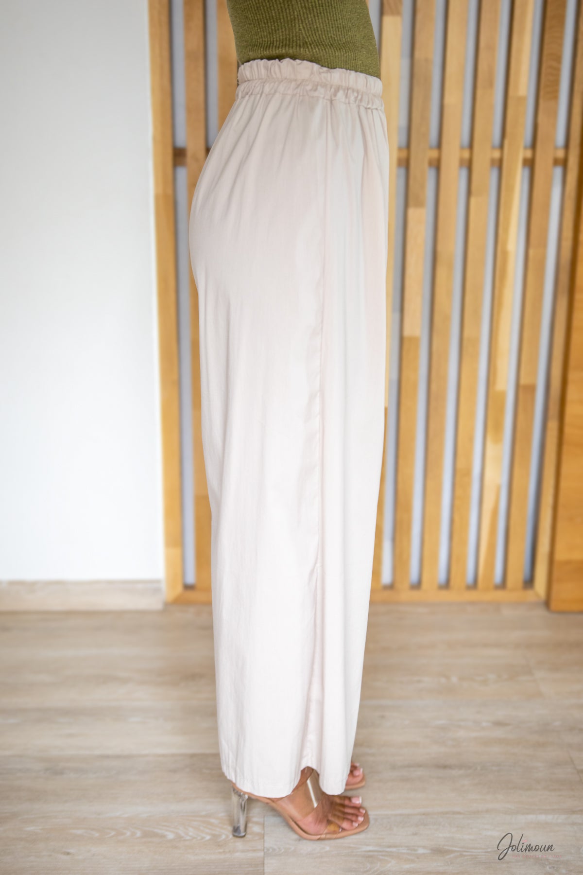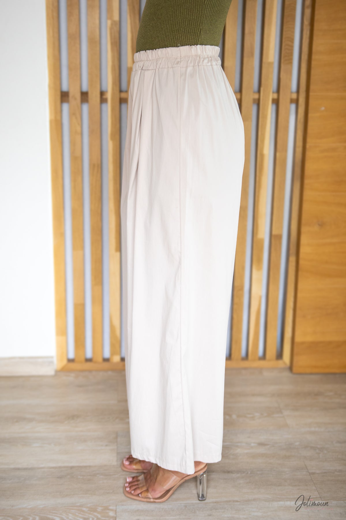 Barbara – Pantalon beige en tissu souple à coupe ample