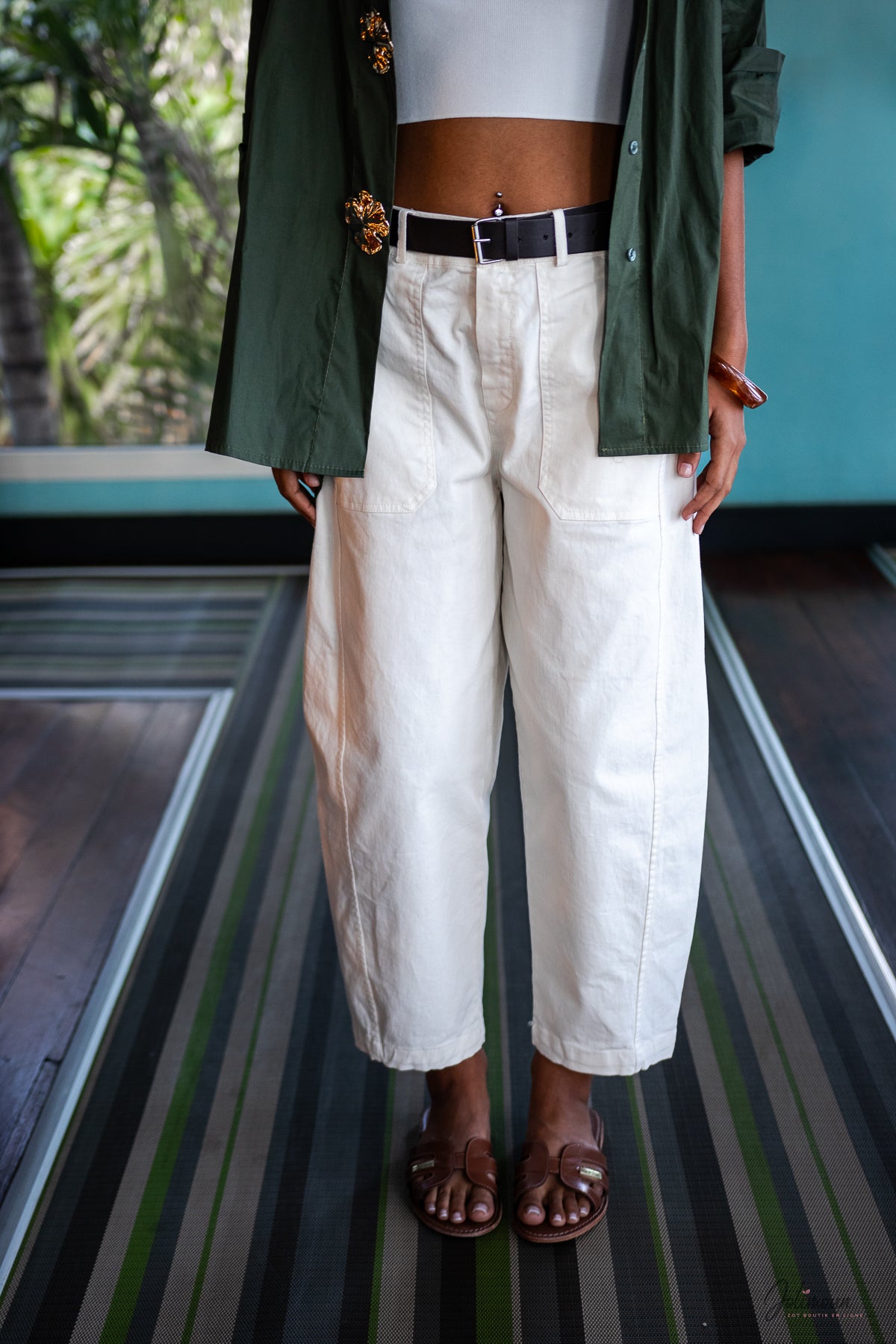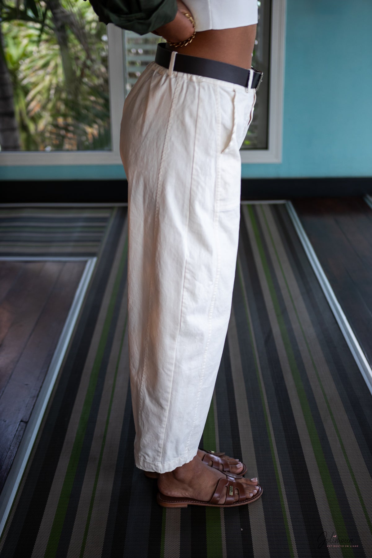 Barrel – Pantalon blanc cassé 100 % coton coupe ample ceinture incluse