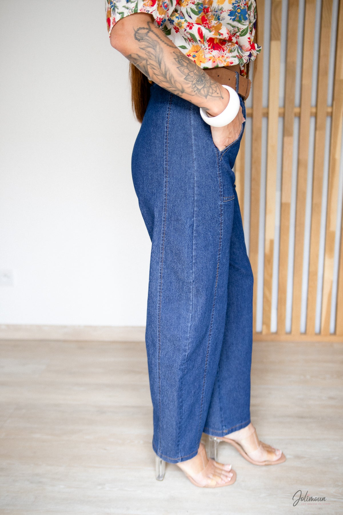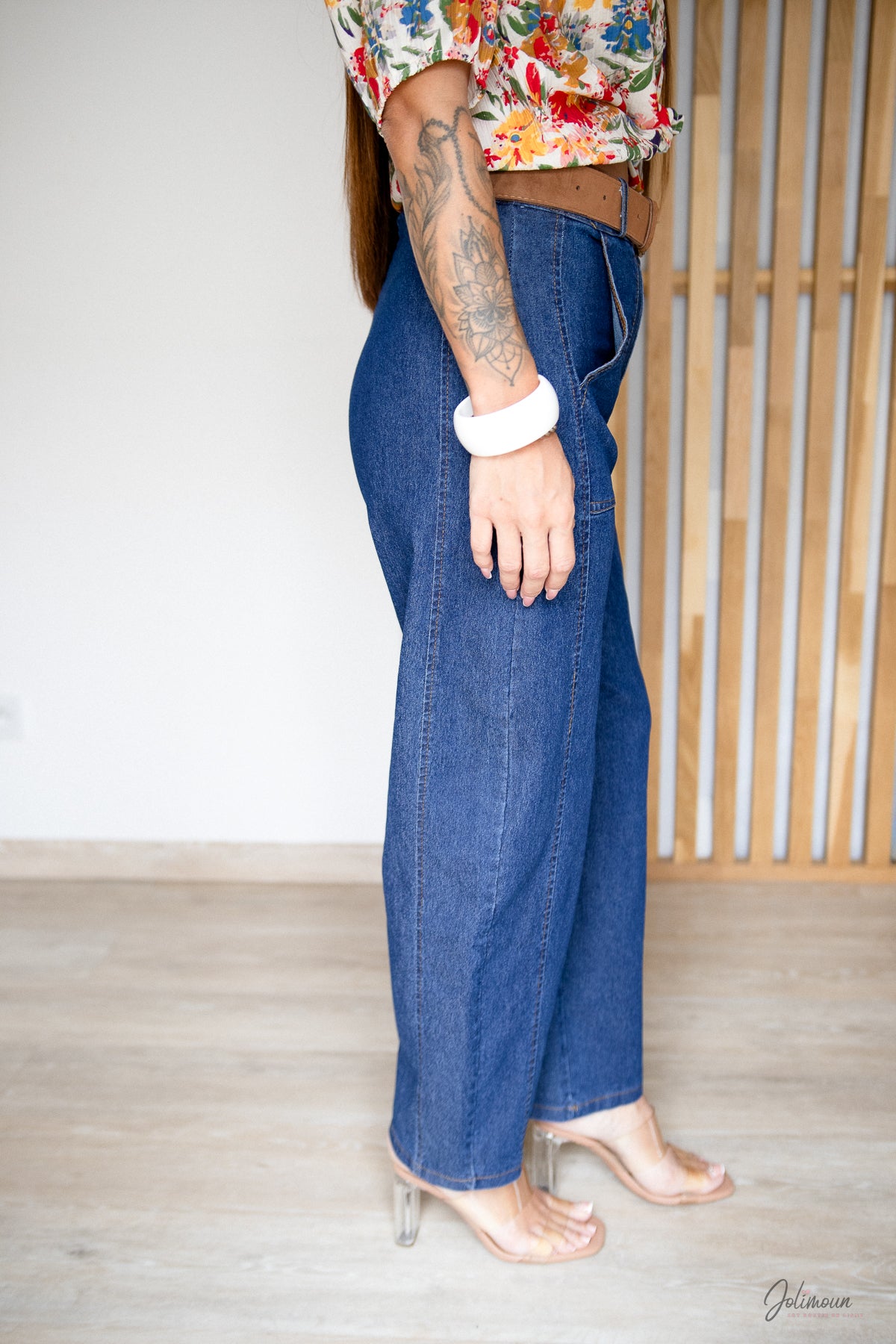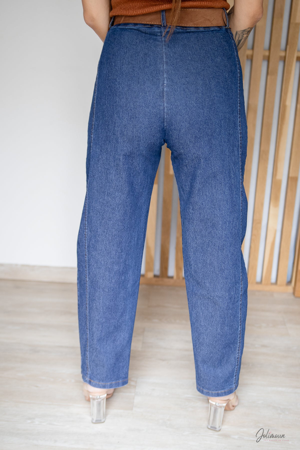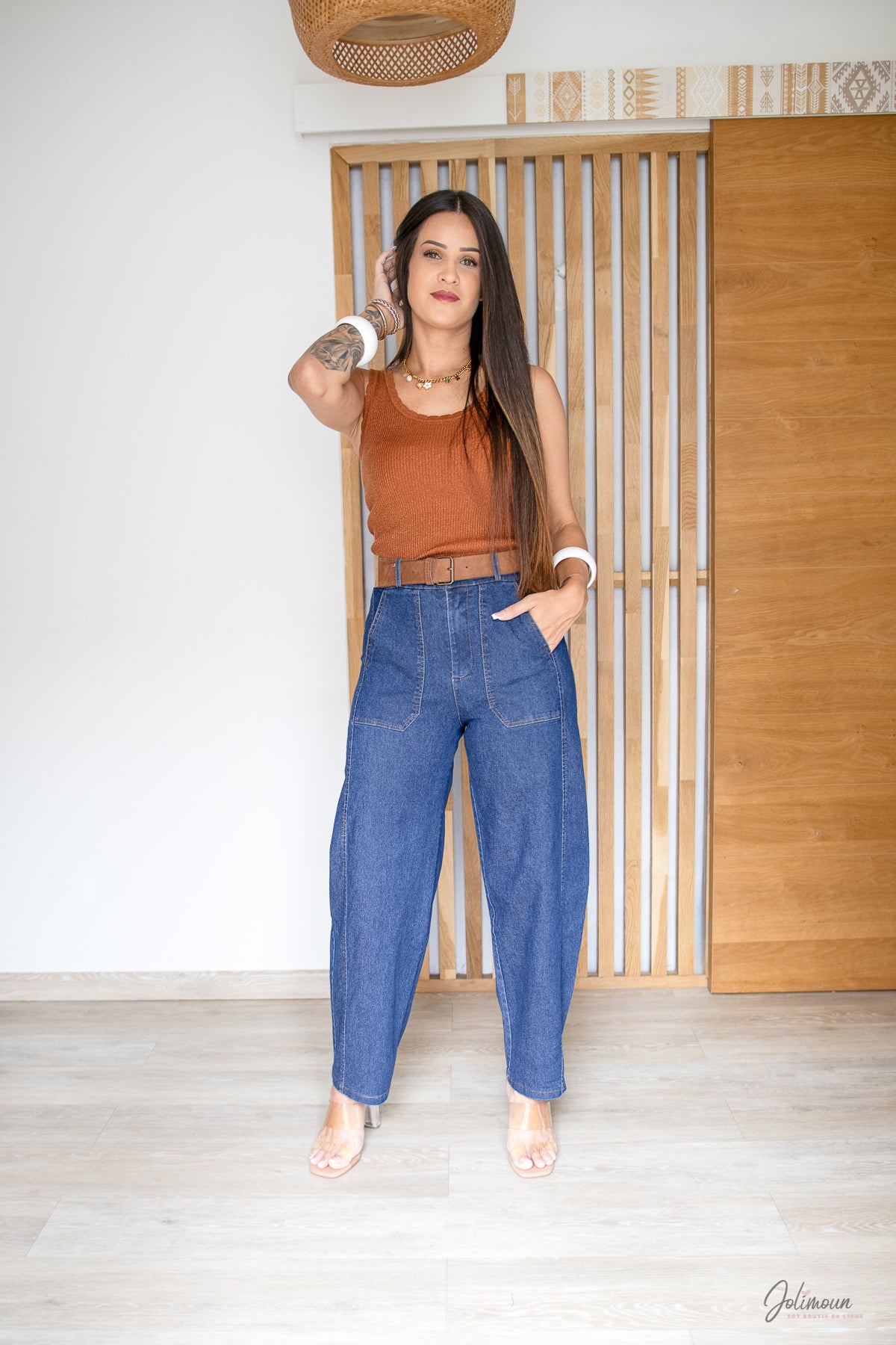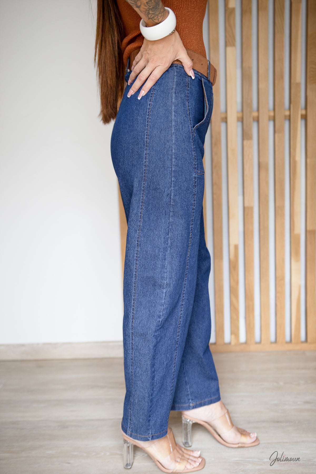 Barrel – Pantalon bleu jeans 100 % coton coupe ample ceinture incluse