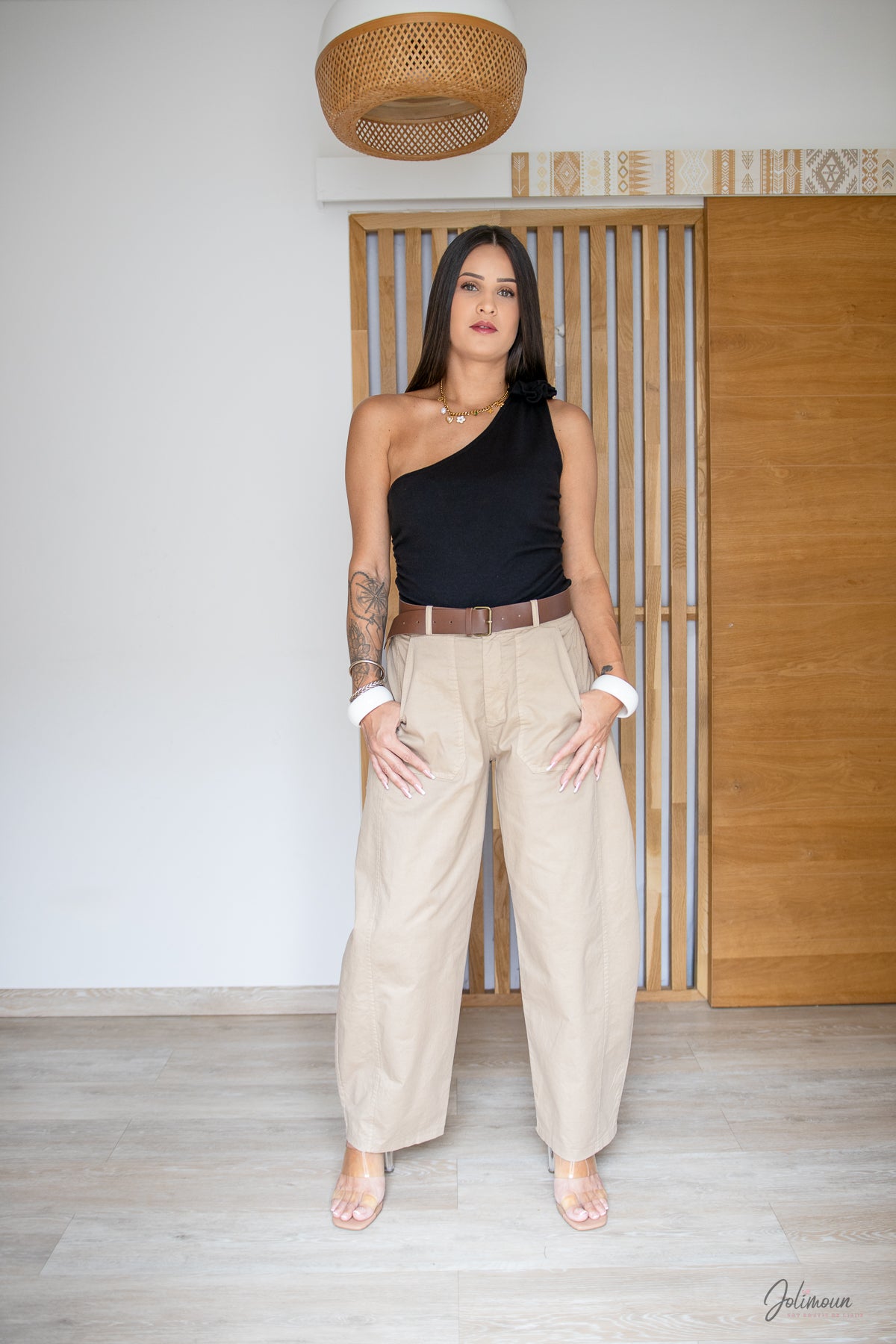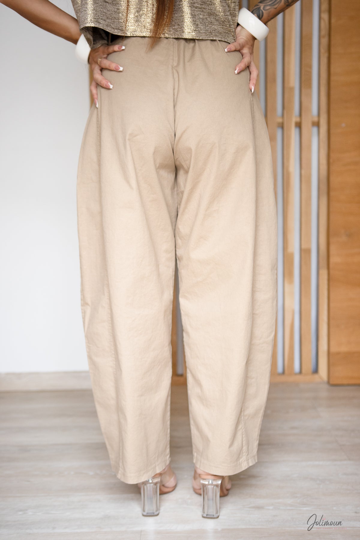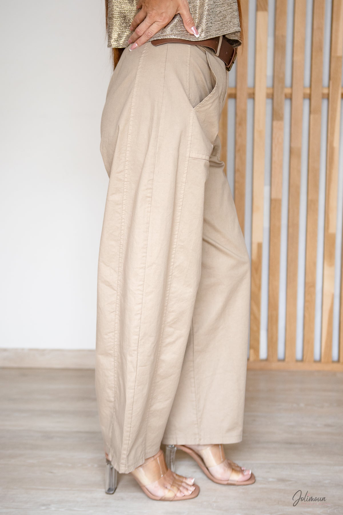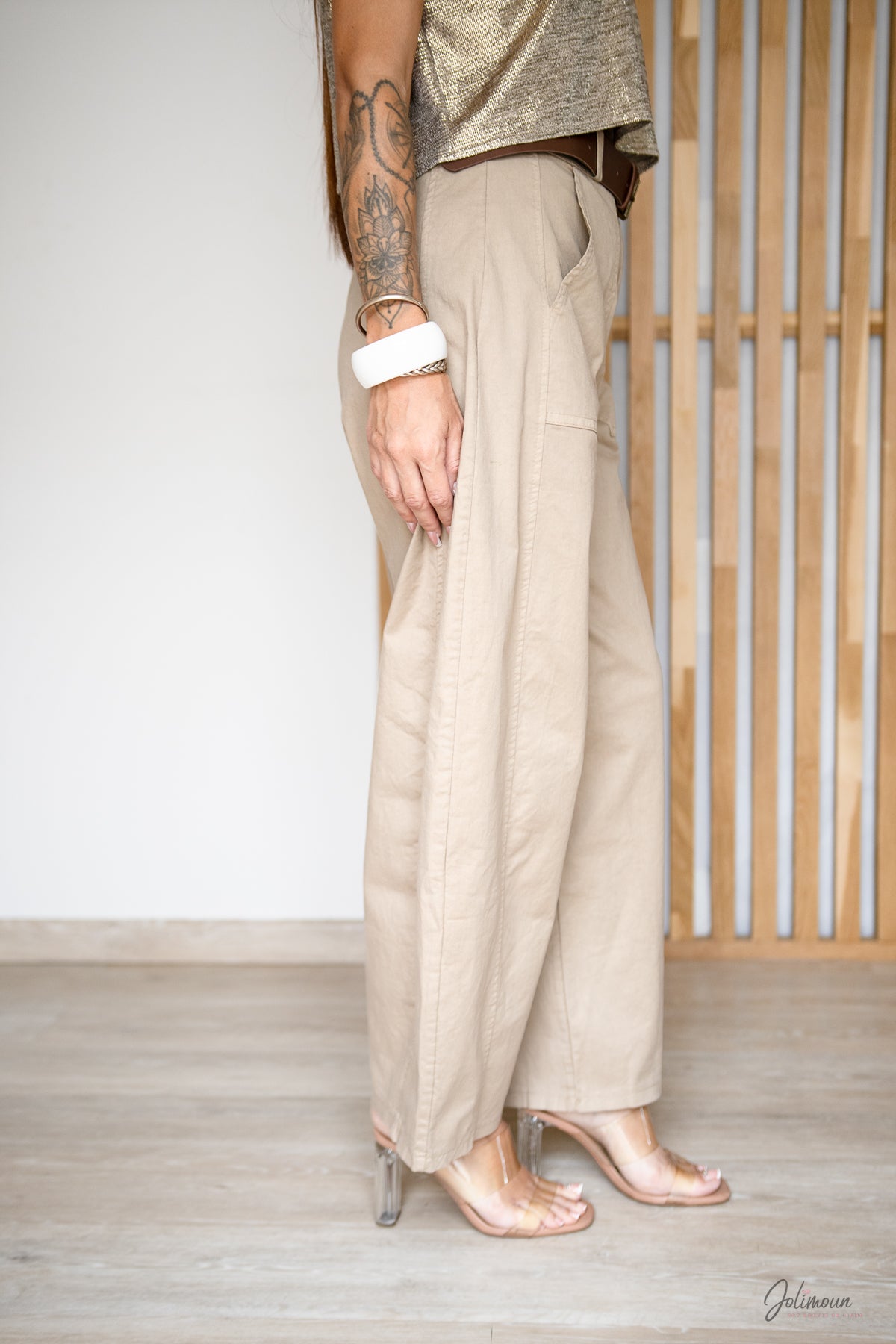 Barrel – Pantalon camel 100 % coton coupe ample ceinture incluse