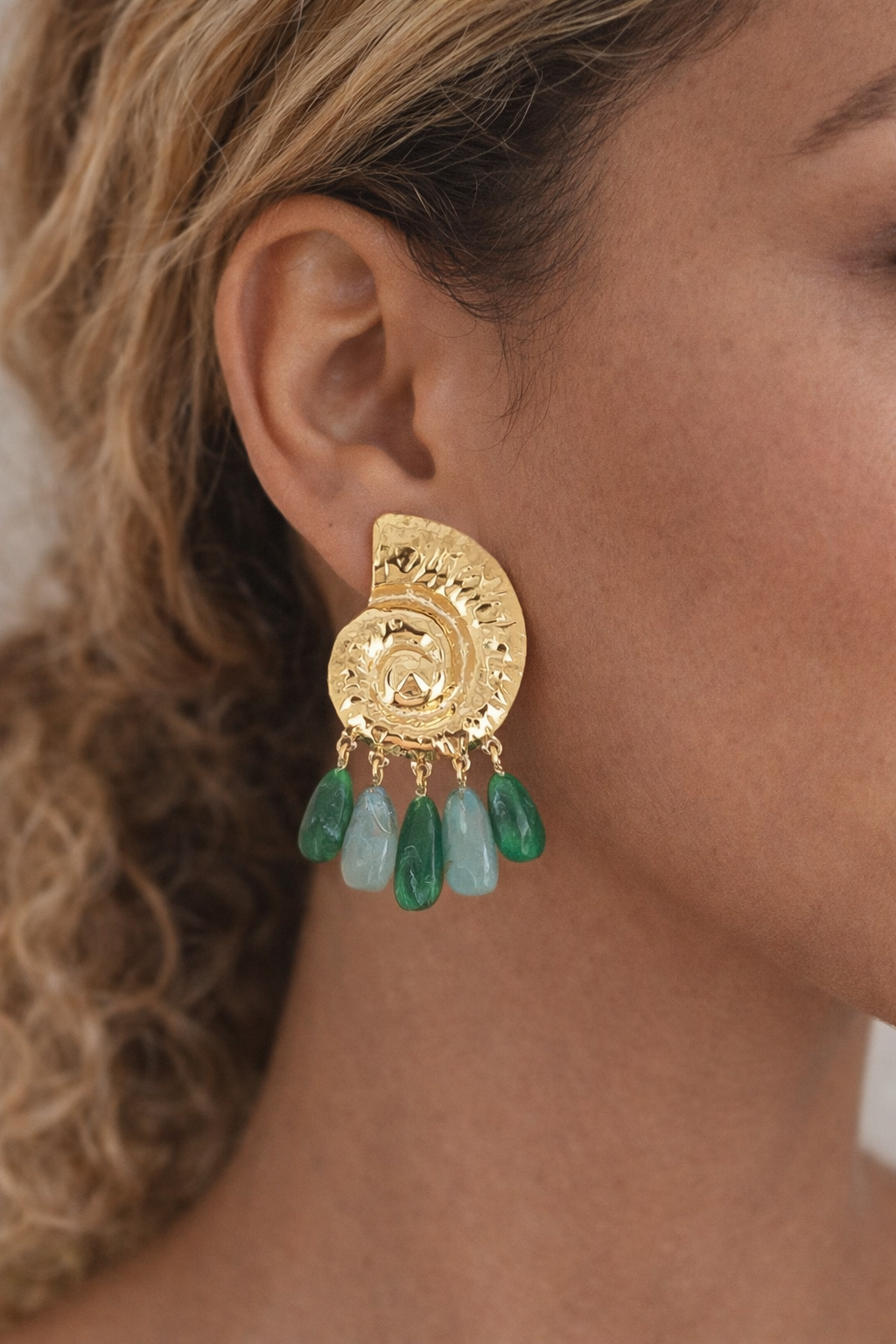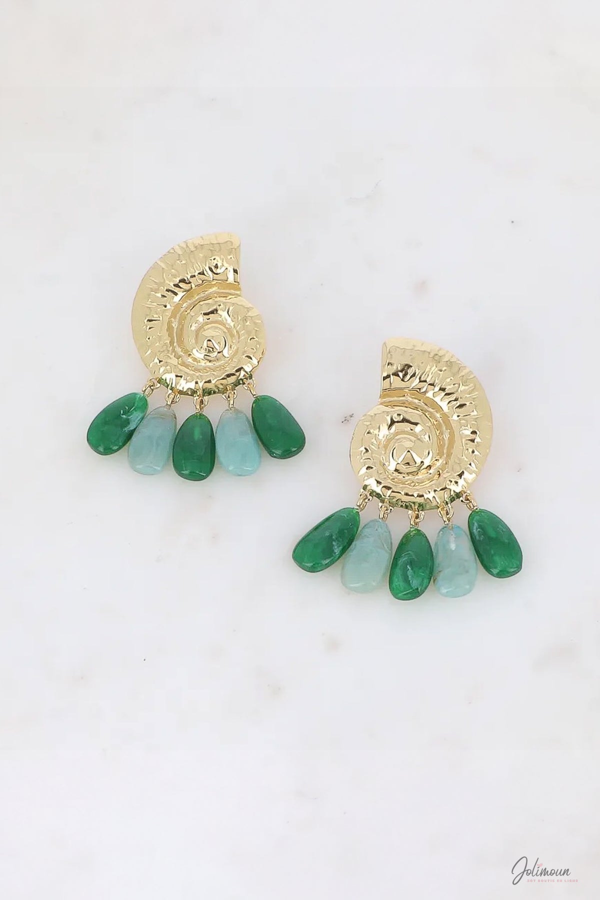 Boucles Nautile Nacré – Boucles d’oreilles dorées coquillage perles vertes