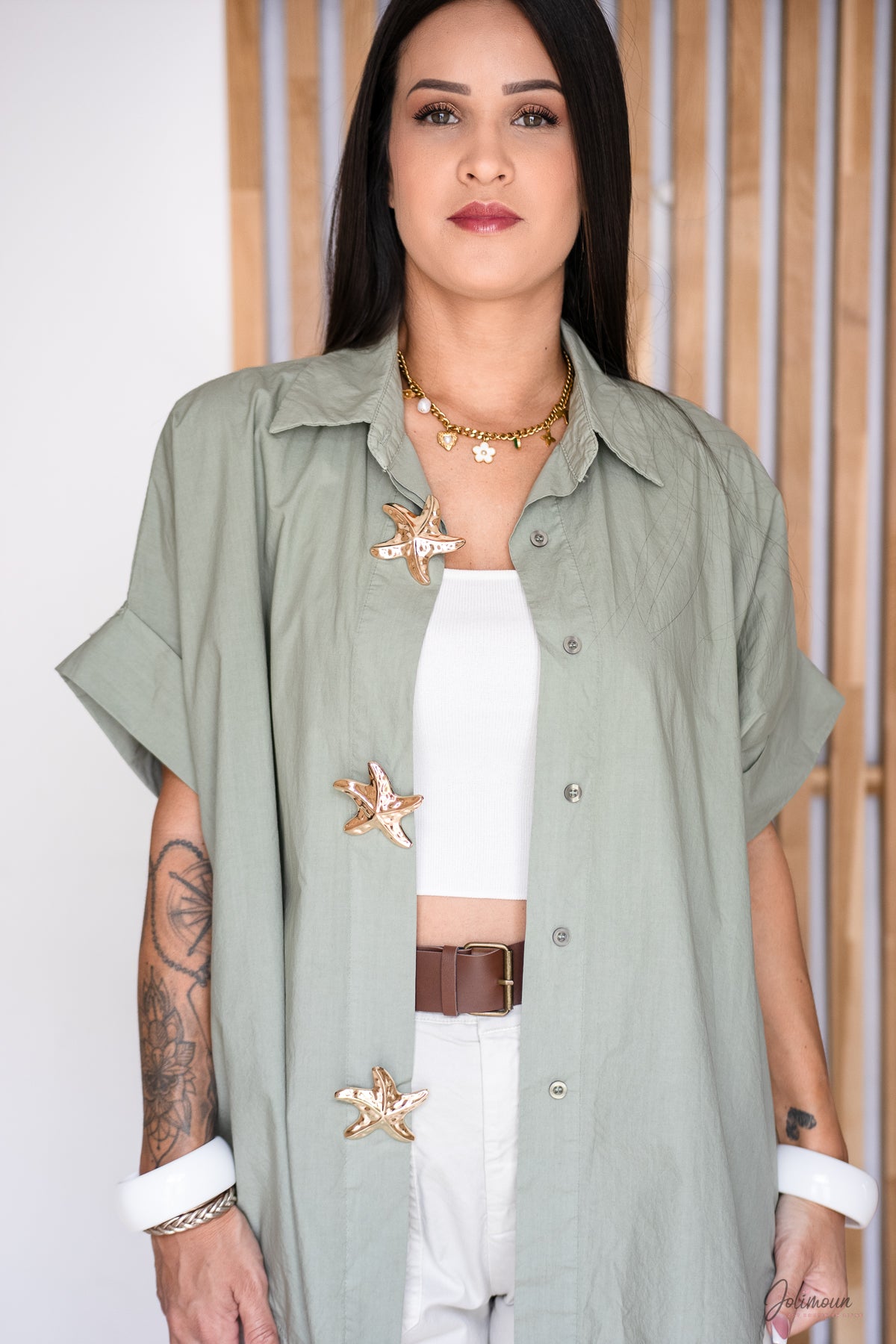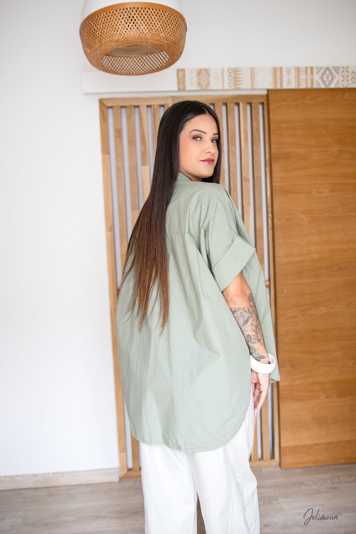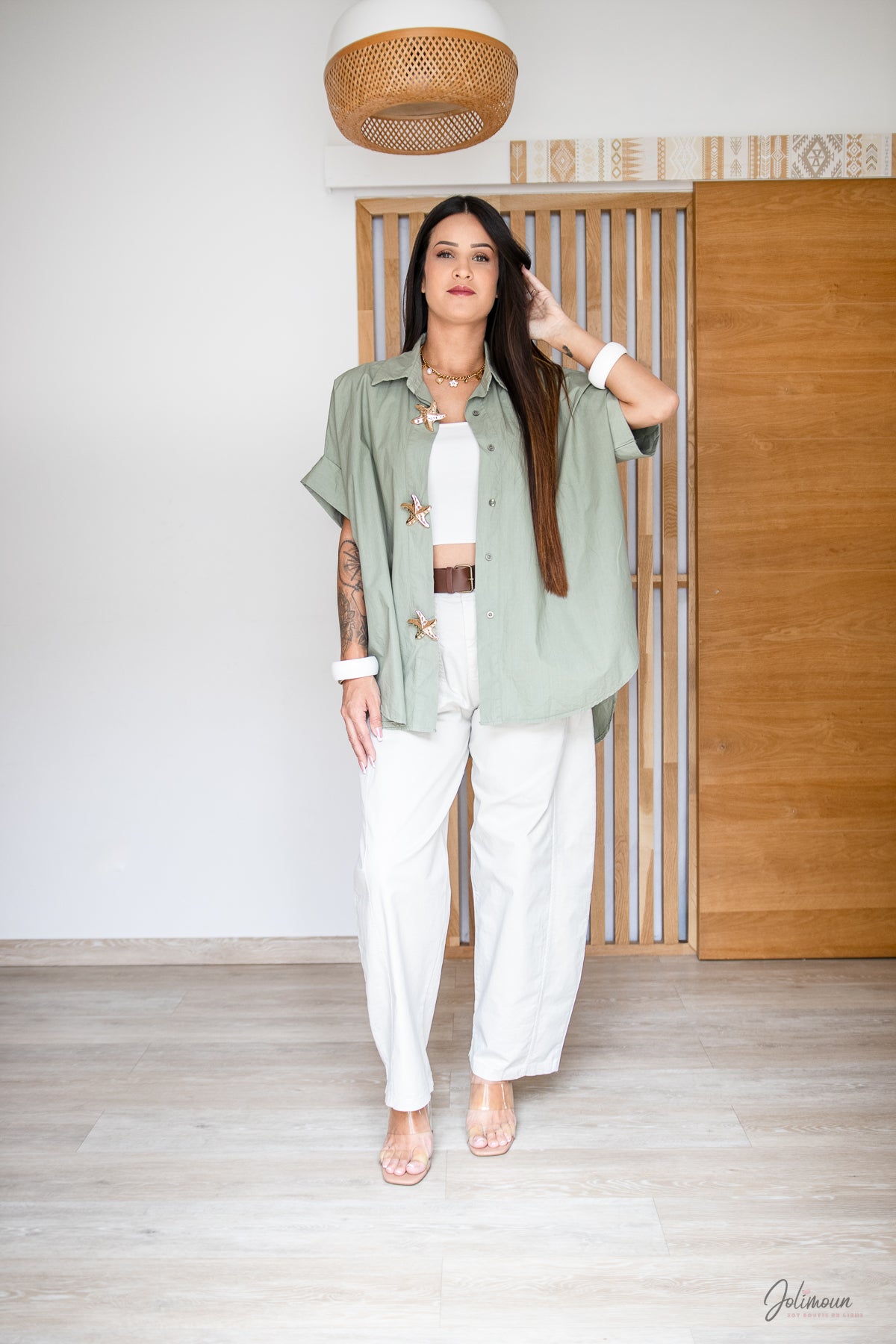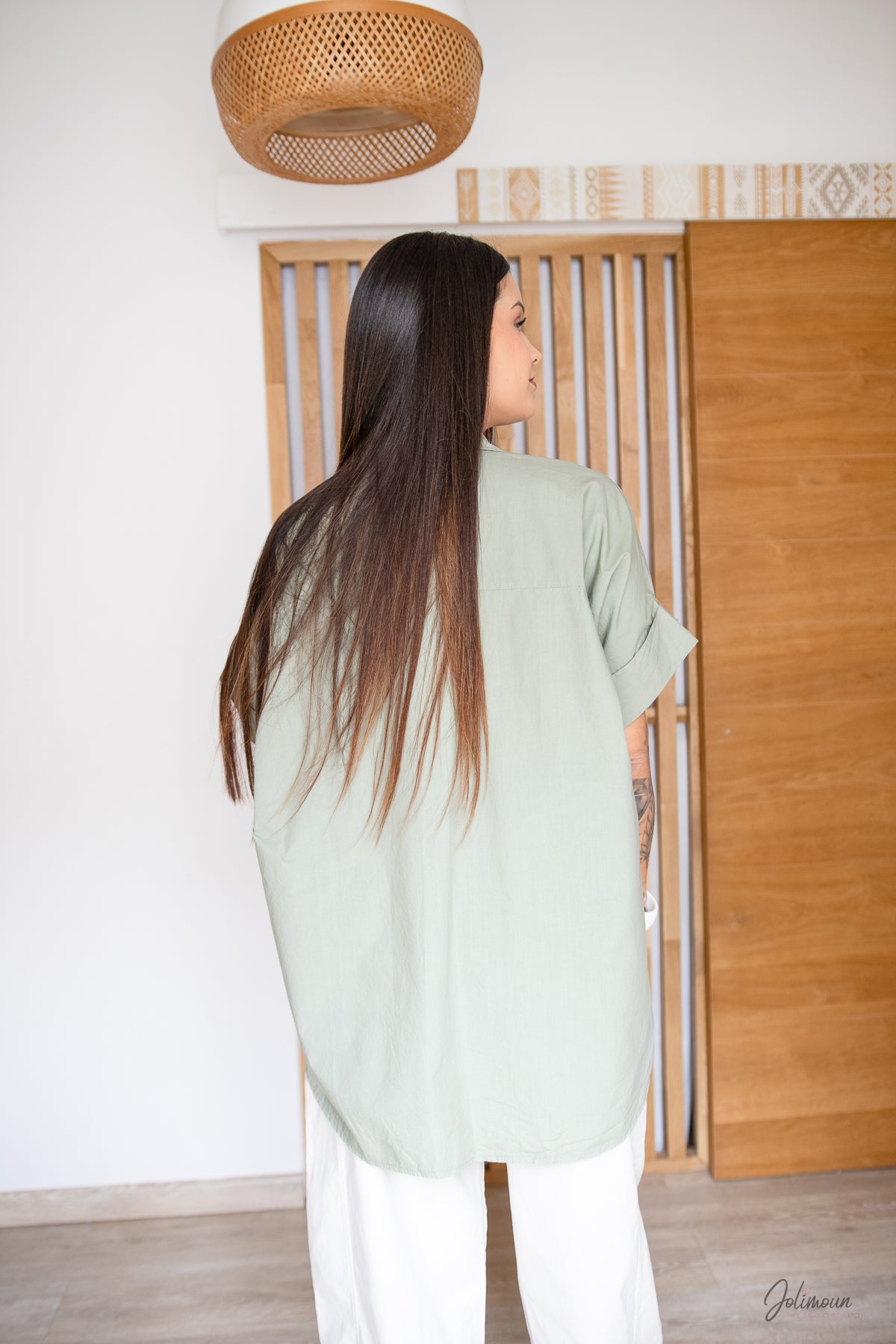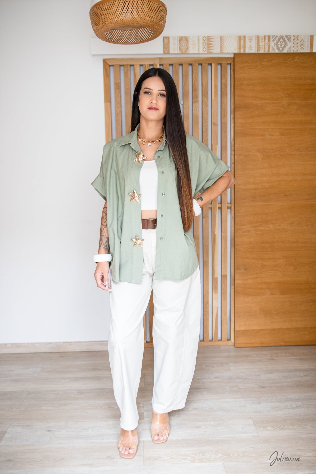 Chemise étoile vert clair – Chemise manches courtes coton broche étoile