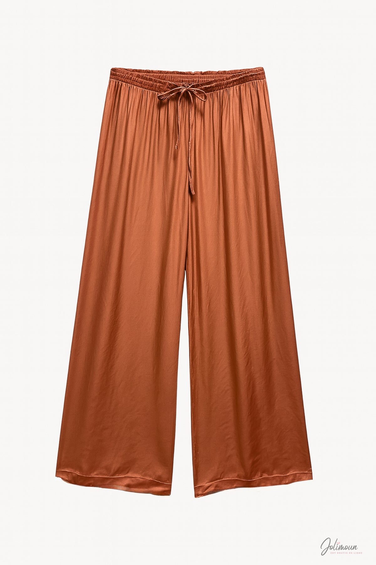 Élégant et fluide, le pantalon Élora est la pièce idéale pour allier confort et raffinement. Son tissu satiné reflète la lumière avec subtilité, apportant une touche chic à vos tenues du quotidien comme à vos soirées.