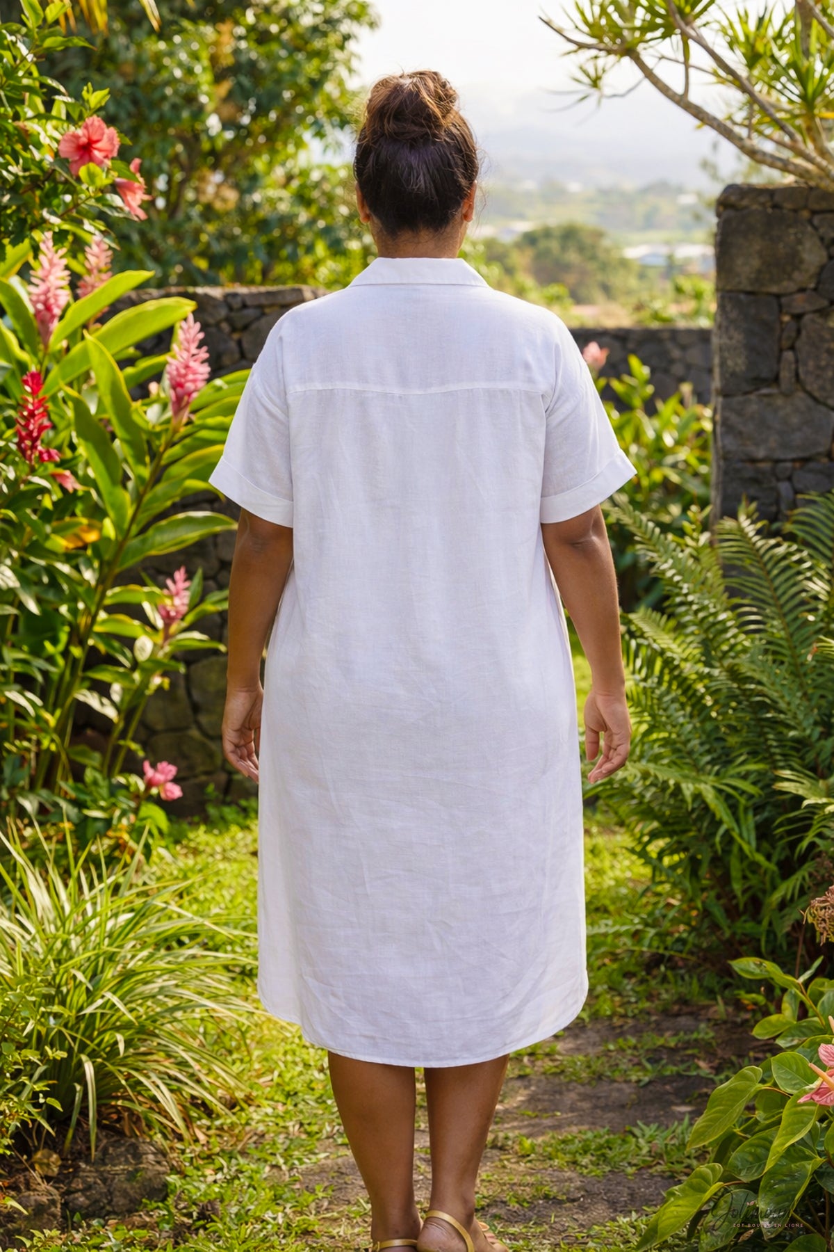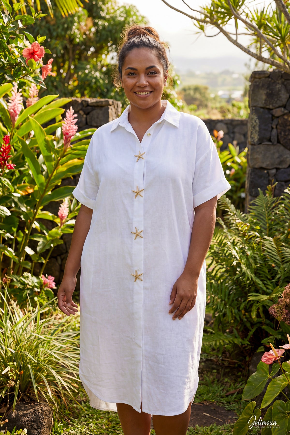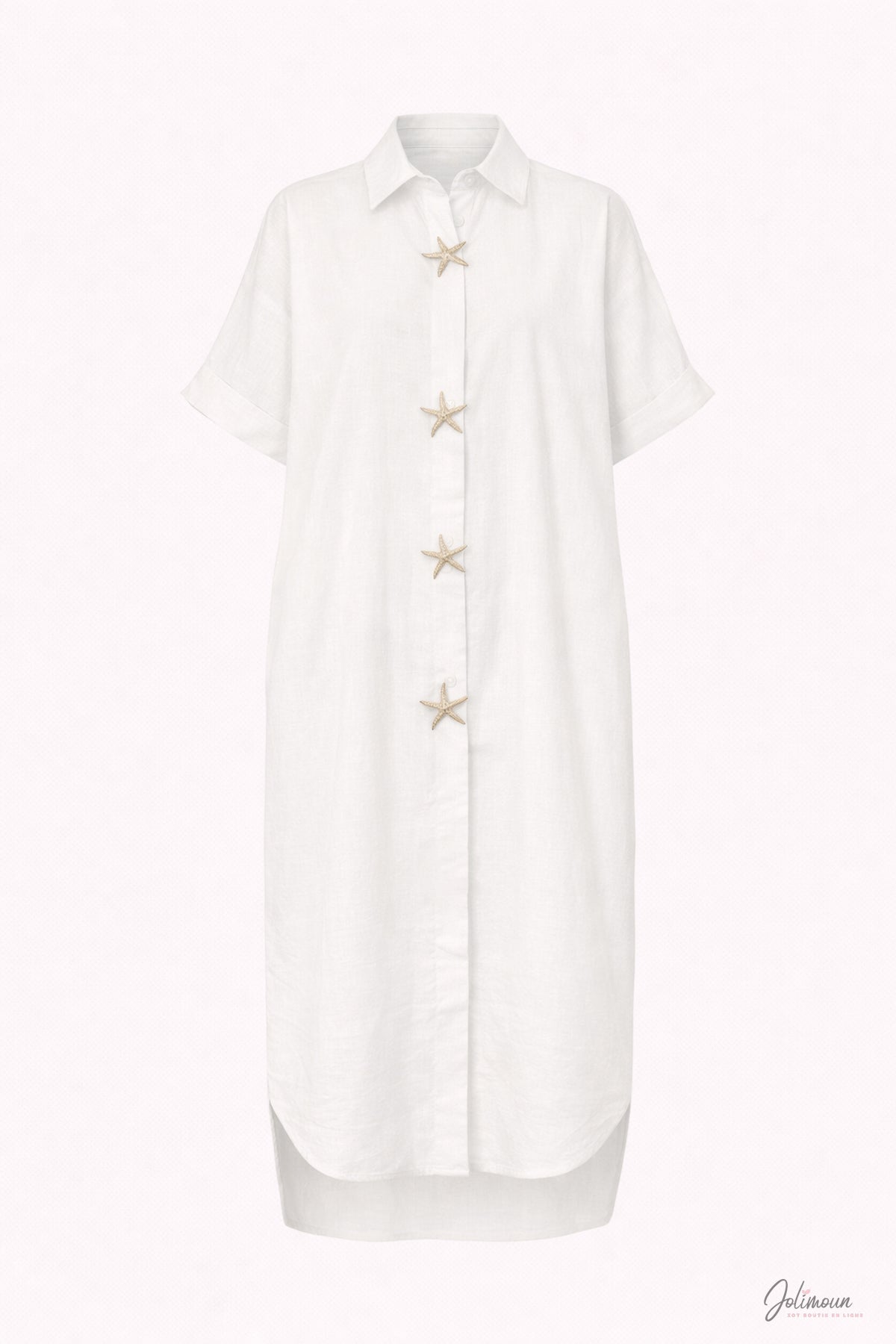 Étoile -Robe chemise coton détails broche étoile