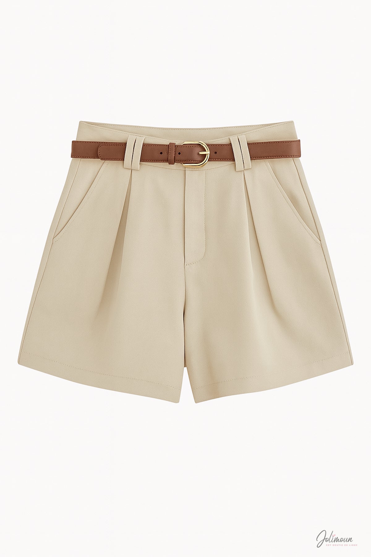 Felice – Short taupe taille haute en coton ceinture intégrée