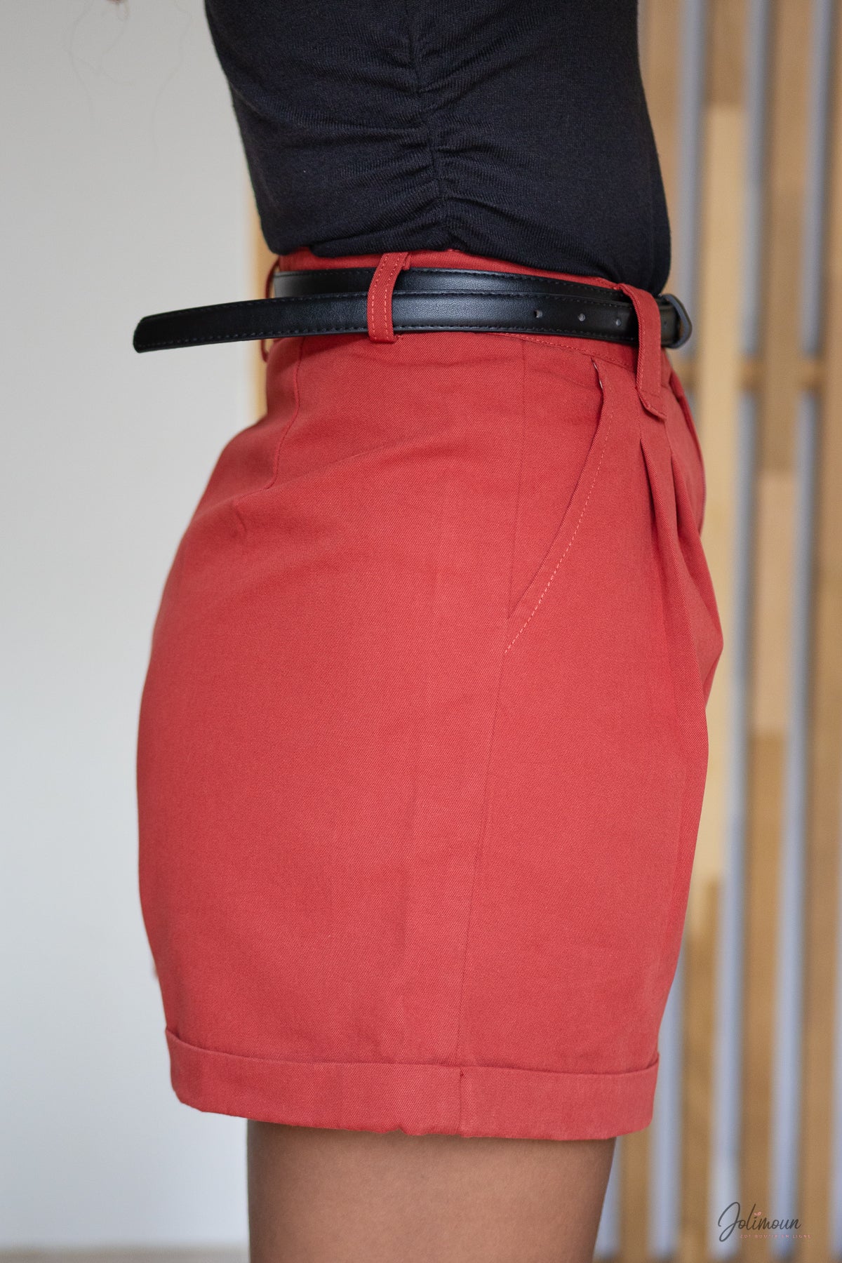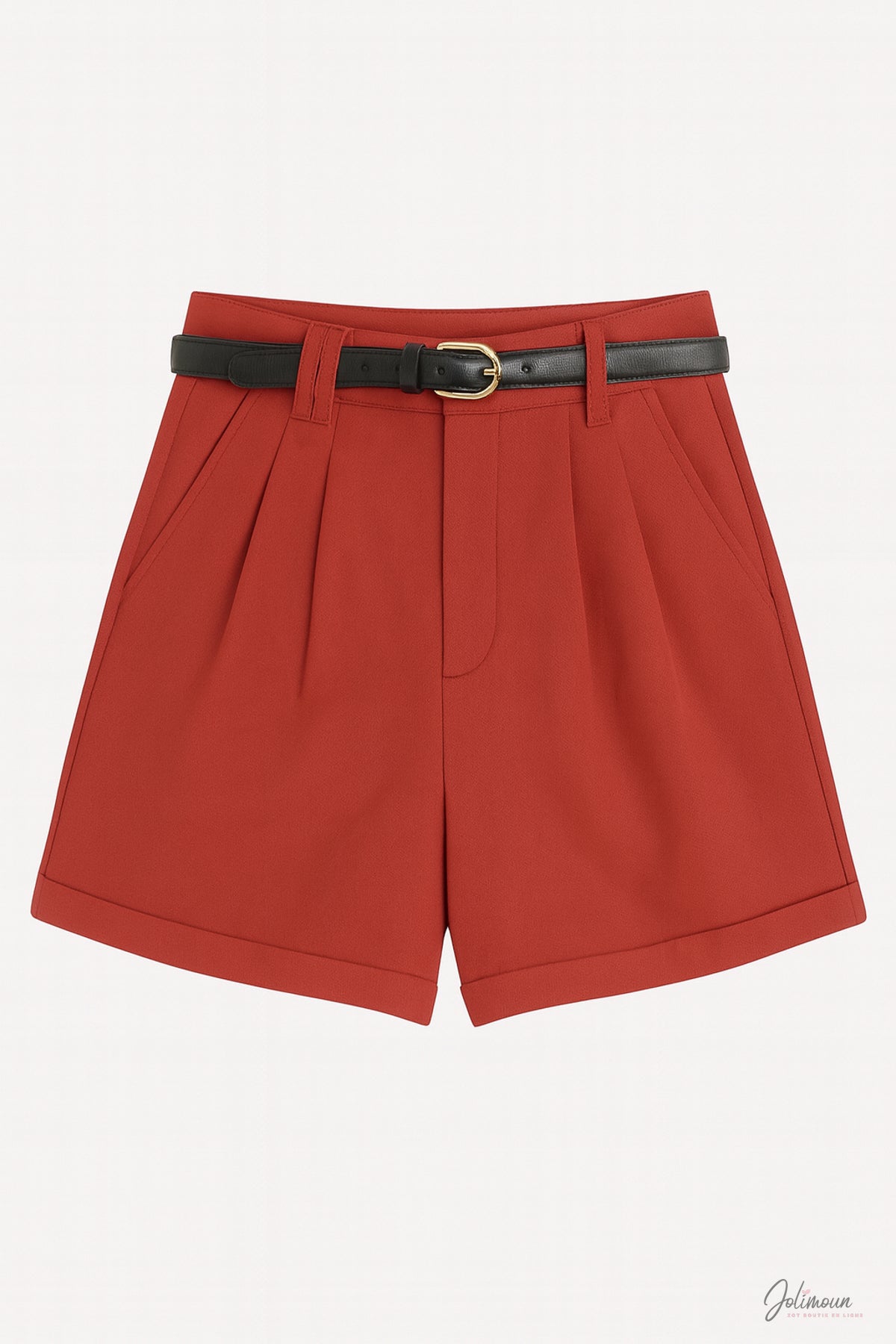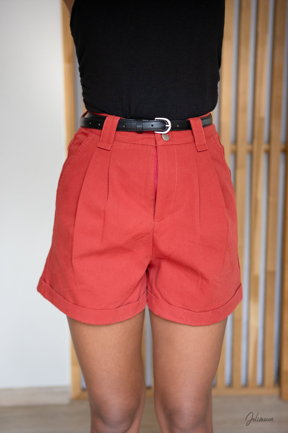 Felice – Short rouge taille haute en coton ceinture intégrée