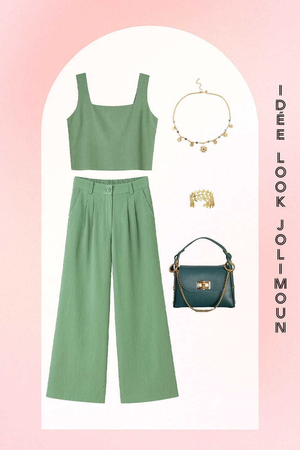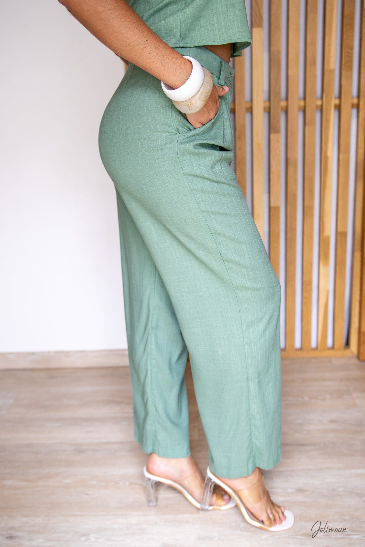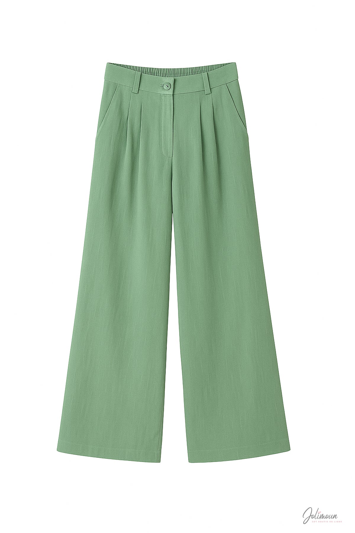 Jolia – Pantalon fluide vert menthe taille haute plis devant