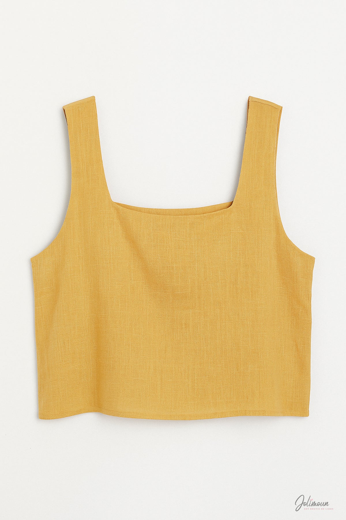 Un top structuré à l’encolure carrée qui flatte la silhouette et s’adapte à toutes les occasions. Grâce à sa coupe ajustée et sa longueur parfaite, il peut se porter seul ou en ensemble avec le pantalon assorti pour un look cohérent et féminin.