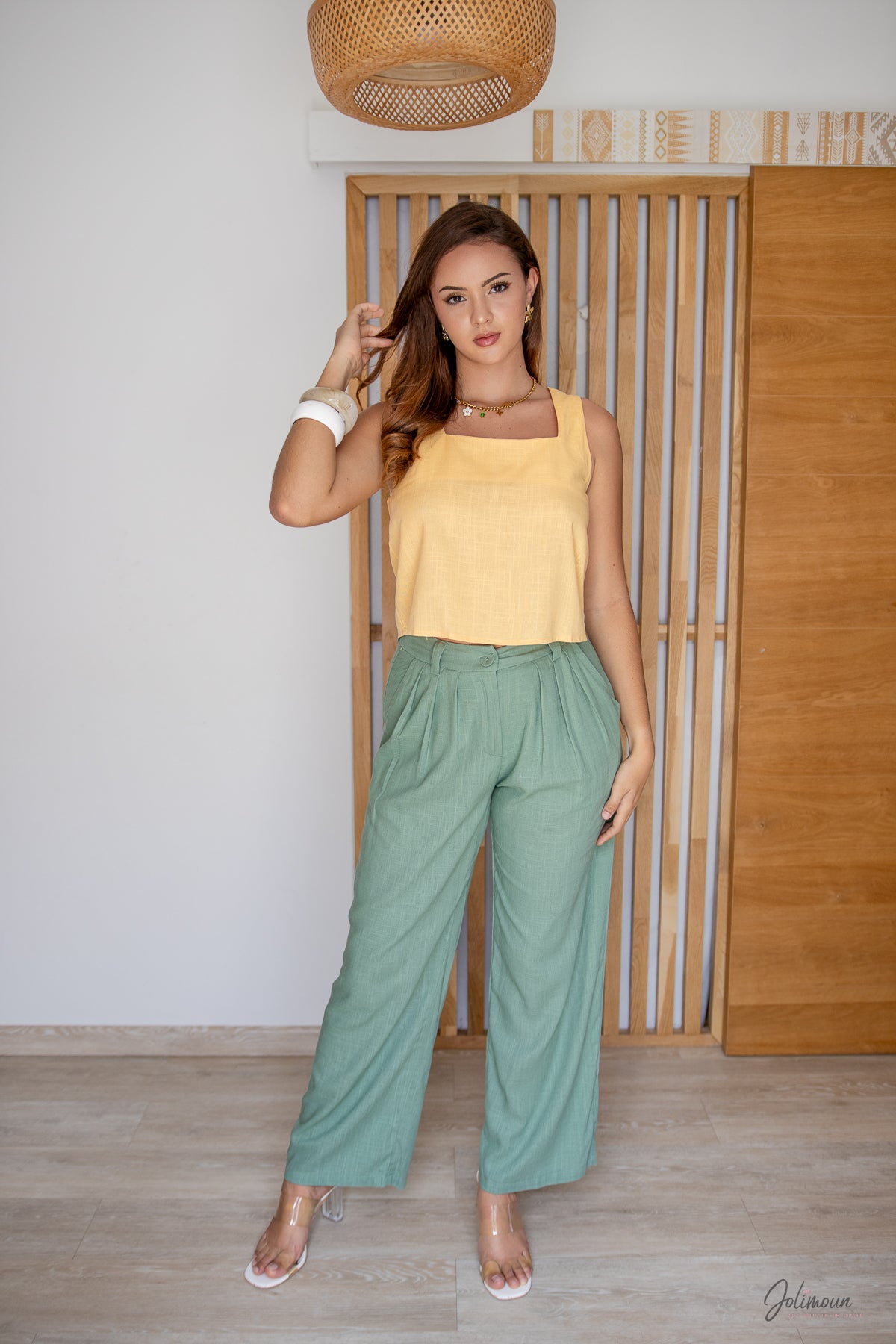 Pantalon Morgane moutarde → pour un camaïeu solaire