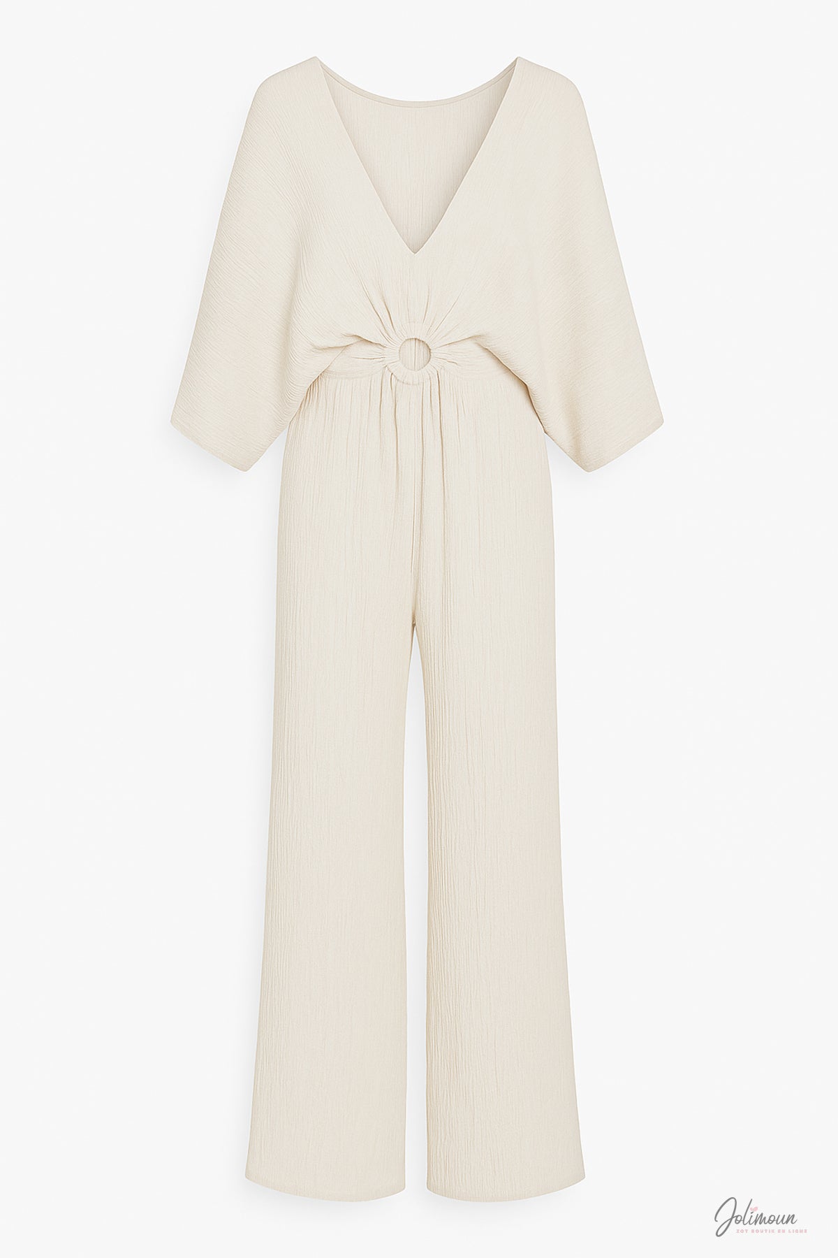 Élégante et aérienne, Léa est la combinaison parfaite pour allier confort et allure chic. Sa coupe fluide et son tissu léger offrent une grande liberté de mouvement, tandis que la taille marquée par un élastique met subtilement en valeur la silhouette.