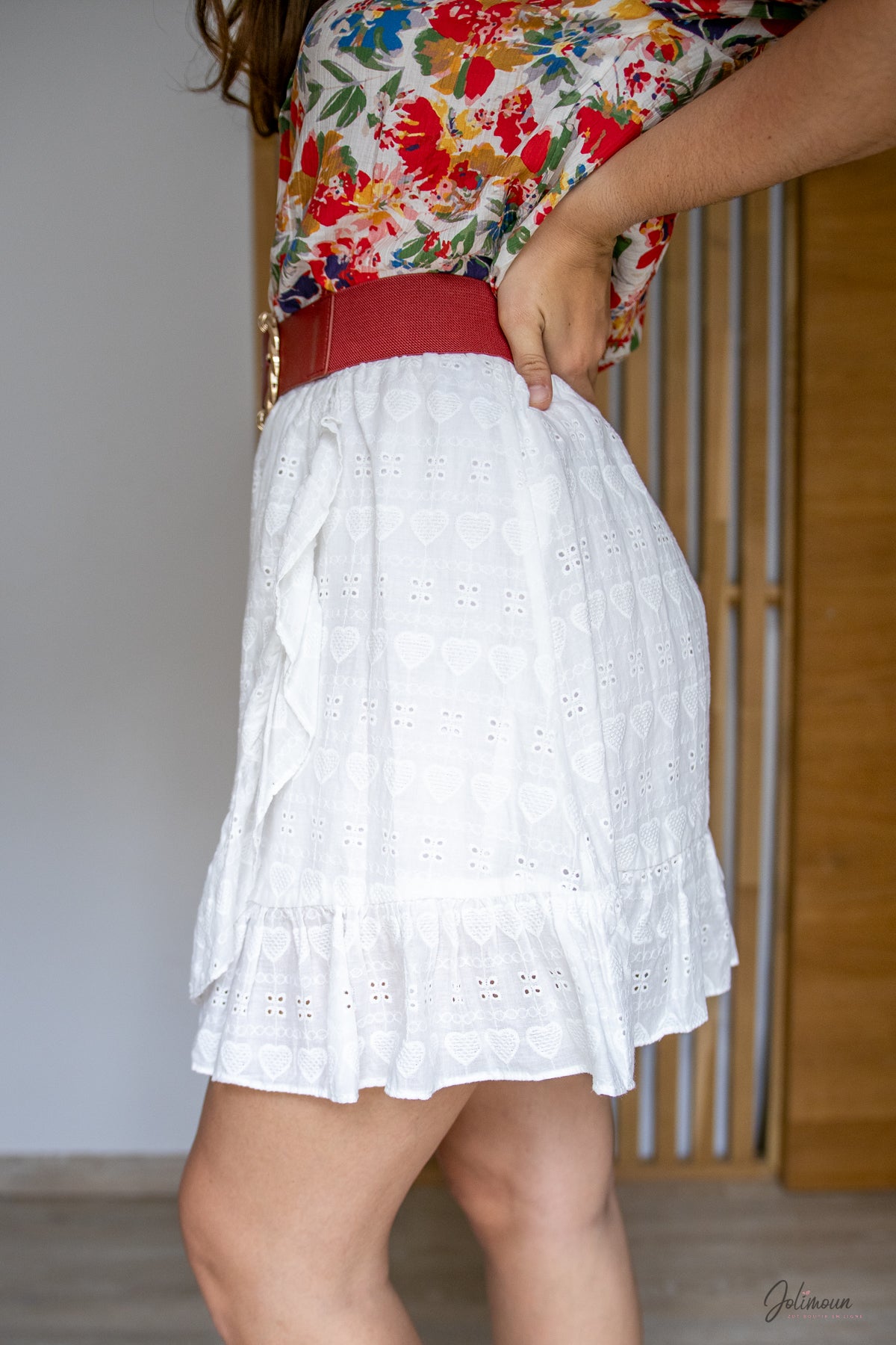Siara – Jupe short blanche effet portefeuille broderie anglaise